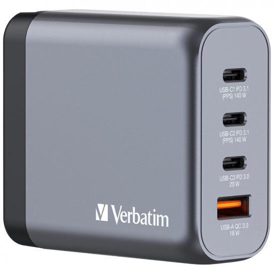 USB punjač zidni Verbatim GNC-140 GaN 140W, 4 priključka